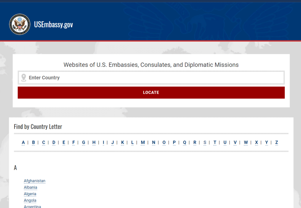 Visit http://www.usembassy.gov to find your country’s U.S. embassy website. If you can't find an embassy to use, please contact PELA.